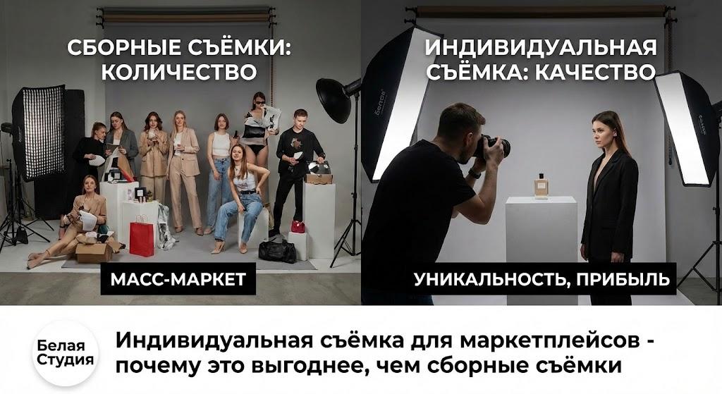 Выбор между индивидуальной и сборной съёмкой товаров — это не просто вопрос бюджета. Это стратегическое решение, которое напрямую влияет на конверсию, средний чек и позиции карточки на Wildberries, Ozon и Яндекс.Маркет. В эпоху, когда изображение заменяет тактильный контакт, качество фото становится главным аргументом для покупки. В этой статье мы разберём, почему инвестиция в индивидуальную съёмку всегда окупается, и как избежать скрытых рисков сборных фотосессий.